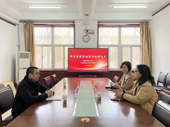 124日,公司与承德市第八中学在公司小会议室进行“优秀生源基地”签约授牌活动。经理聂书法、党委副书记池晶、承德市第八中学副董事长马四勇参加活动。