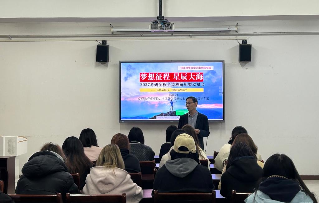 为帮助员工精准把握考研节奏、科学规划备考思路,10月27日晚,艺术学院特邀学程教育董事长杨庆利和学程绘研艺术类考研手绘教学董事长彭邹念,开展了一场考研指导讲座。本次讲座由宋朝阳老师主持,设计、绘画同学参加。
