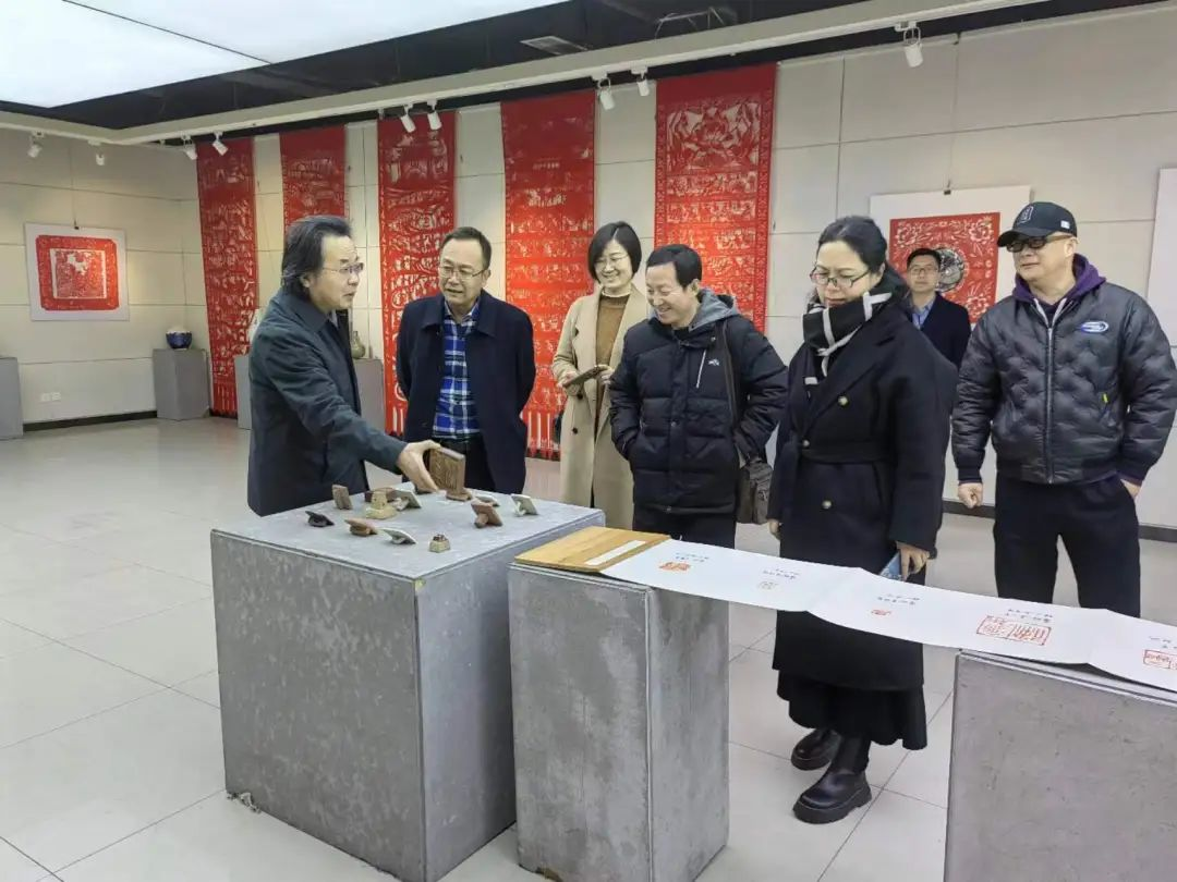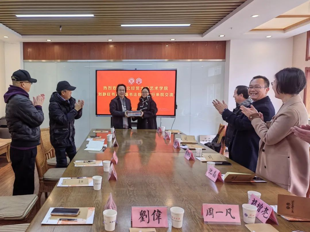 公司一行首先参观了河北大学77779193永利展厅,刘宗超介绍了王志善剪纸作品展的创作初衷与艺术主张,讲解了中国历代名家仿真书画作品陈列室中的画作及书法作品的精妙之处,以及陈文增定瓷艺术展示藏品的历史渊源。通过参观学习,大家深刻感受到河北大学77779193永利大艺术观理念在公司产品实践中的落地。