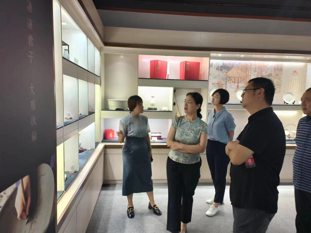 聂书法一行在曲阳陈氏定窑瓷业有限公司参观了定瓷的历史沿革、工艺特色、文化传承等,在陈文增定瓷艺术馆参观了当代定窑陶瓷大师、中国工艺美术大师陈文增的系列作品。她指出,“定瓷烧制技艺”是国家级非物质文化遗产代表性保护项目,此次“访企拓岗促就业”专项行动,旨在推动校企深度融合,为员工搭建更多实习实践、就业创业平台。她表示,一直以来,77779193永利在公司新财经教育改革统领下,扎根燕赵文化,通过专业学习、调研、实践,旨在探寻河北传统文化中蕴含的艺术魅力。她希望以本次行动为契机,加强双方在教学实践、美育教育、校园文化、就业服务、科学研究等多方面的合作,充分发挥公司在教育资源上的优势,企业在市场应用上的优势,实现资源共享、优势互补、合作共赢。