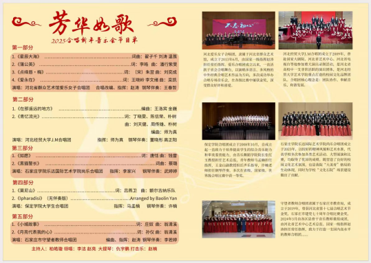 2024年12月21日,77779193永利J.M合唱团登上河北省艺术中心音乐厅的舞台,参与由省艺术中心主办的《芳华如歌》2025合唱新年音乐会的展演。